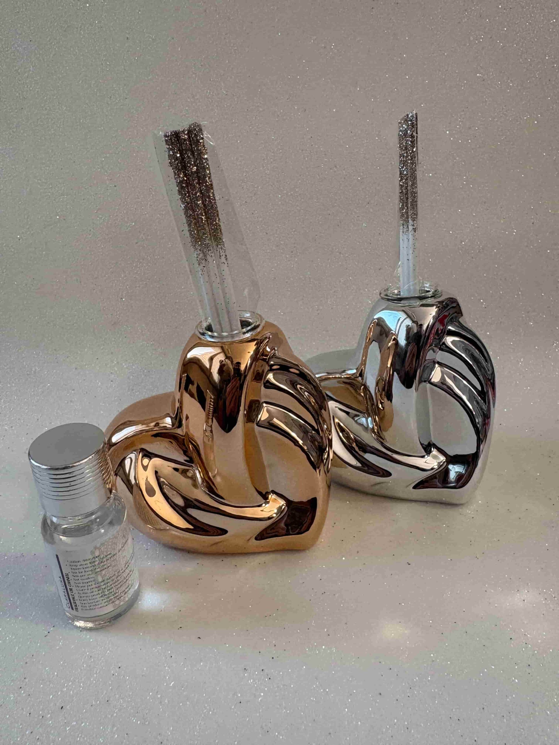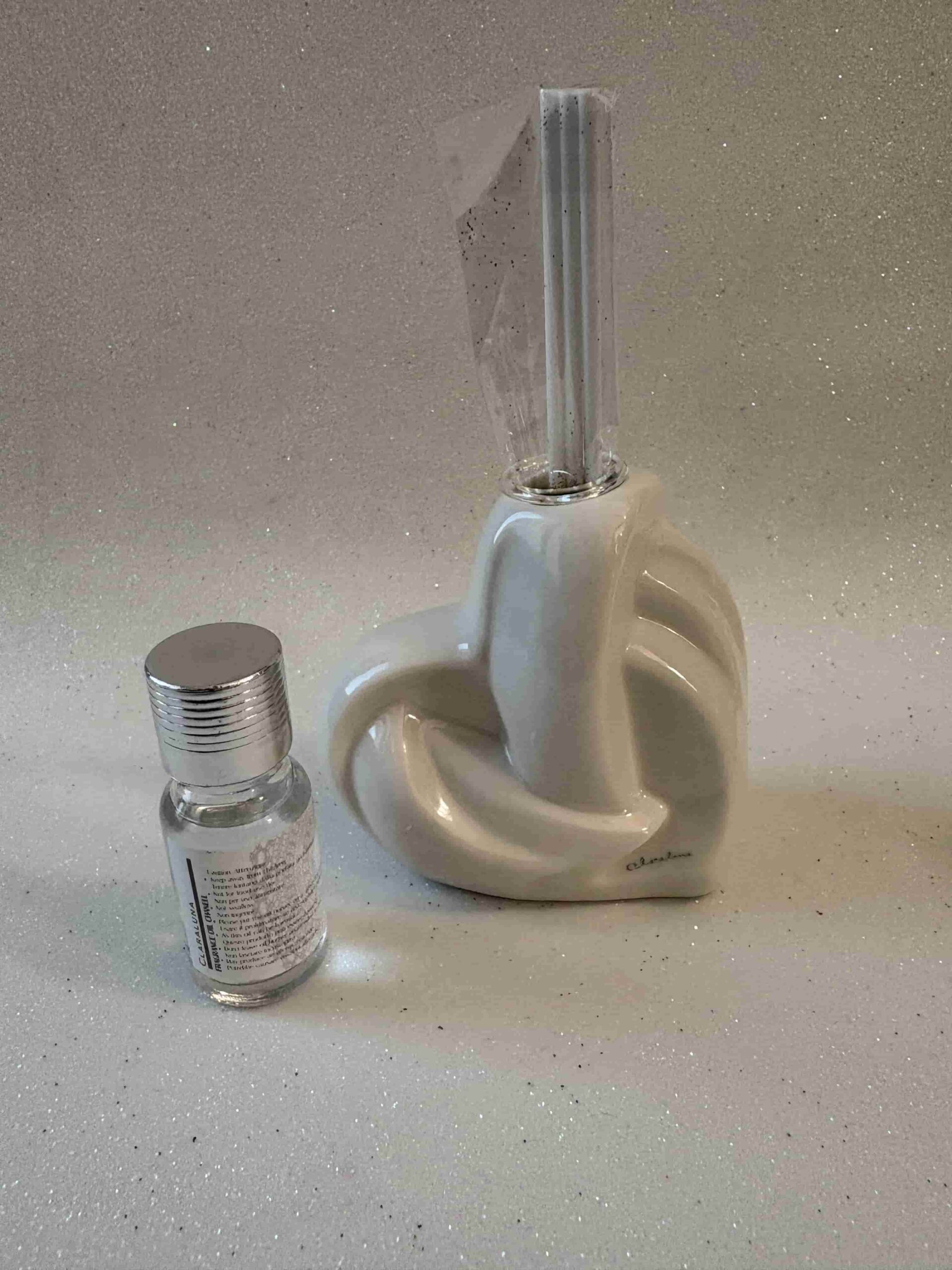 Profumatore a cuore bianco in porcellana con bastoncini glitterati con essenza. Disponibile anche con confezionamento e confetti.