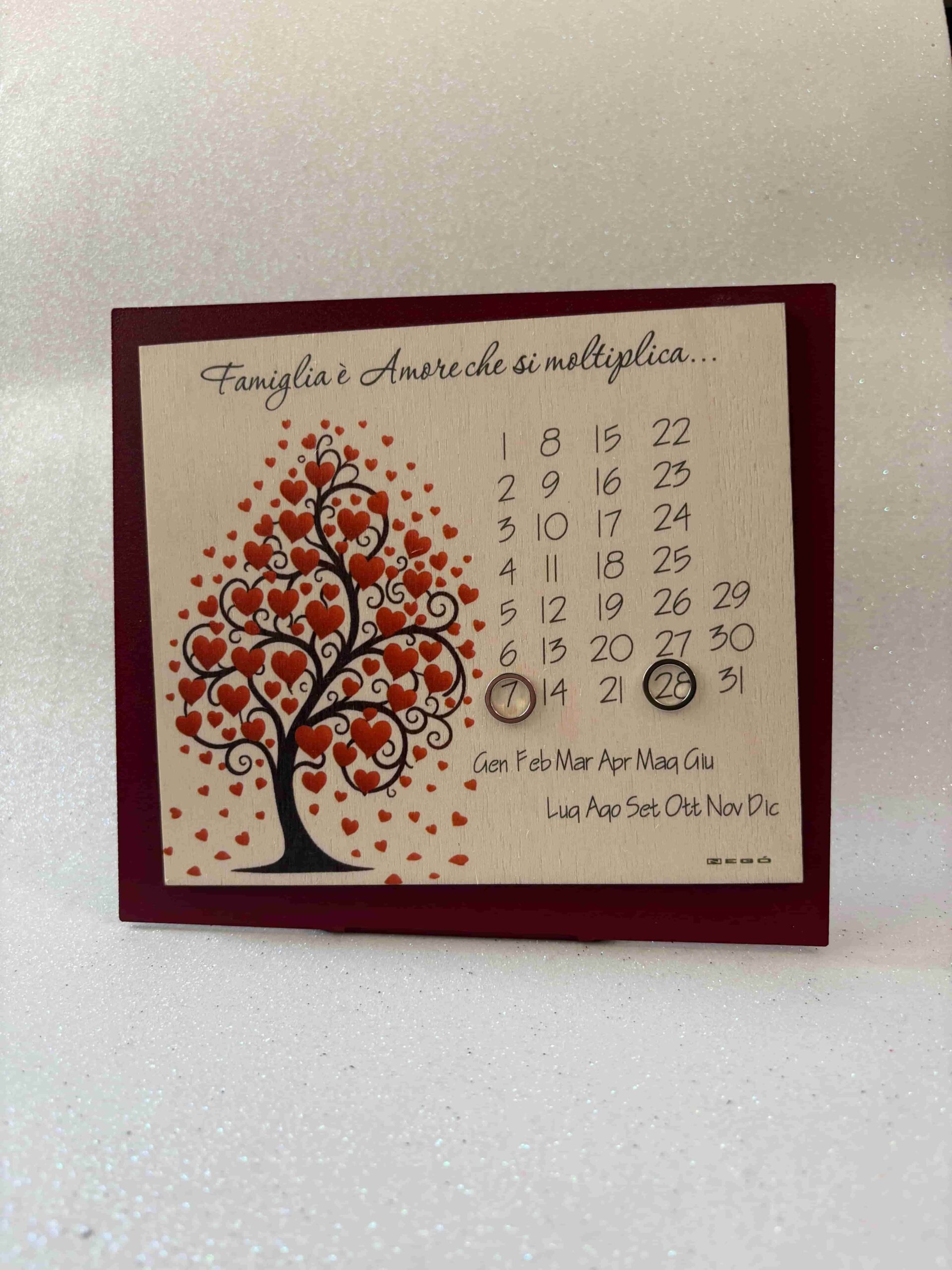 Calendario perpetuo negò con albero della vita e frase: “Famiglia è Amore che si moltiplica…”